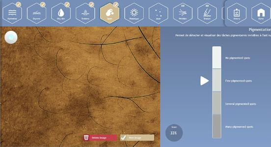 - Regroupe plusieurs appareils (Dermatop, Colorimètre, Spectromètre, Chromamètre, Analyses Qrides, QSeb, Qsquames, Analyse des pores/évaluation de l’acné/inflammation/érythème)